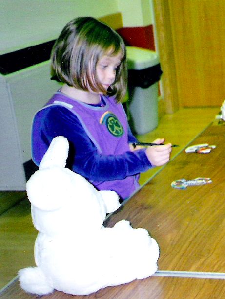 then stuck on the yellow beaks and wobbly eyes and the leaders helped us to glue